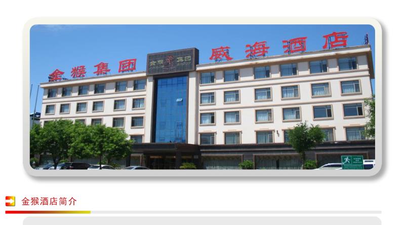 ★金猴集團威海酒店座落于威海高技術產業(yè)開發(fā)區(qū)丹東路88號,是金猴集團下設的全資子公司,酒店于05年6月營業(yè),是以餐飲、客房、會議為主體的掛牌三星級旅游飯店,同時擁有“全國工業(yè)旅游示范點”、“黨政機關定點接待飯 店”、“山東旅游服務名牌”、“威海市優(yōu)秀旅游飯店”四項行業(yè)榮譽。