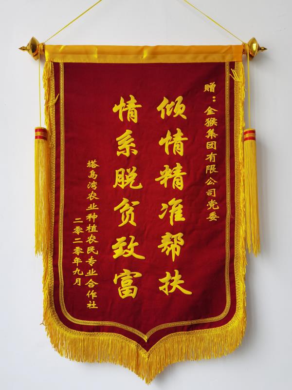 近日,乳山市塔島灣農(nóng)業(yè)種植農(nóng)民專業(yè)合作社給集團(tuán)黨委送來(lái)書(shū)有“傾情精準(zhǔn)幫扶 情系脫貧致富”的錦旗,以感謝金猴集團(tuán)在消費(fèi)扶貧工作中對(duì)他們的支持和幫助。
