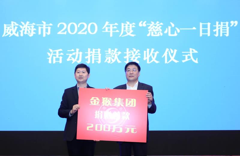 頒獎(jiǎng)典禮結(jié)束后,威海市2020年度“慈心一日捐”活動(dòng)捐款儀式舉行,集團(tuán)紀(jì)委書記、工會(huì)主席鄒曉伍代表公司向市慈善總會(huì)捐款200萬(wàn)元。