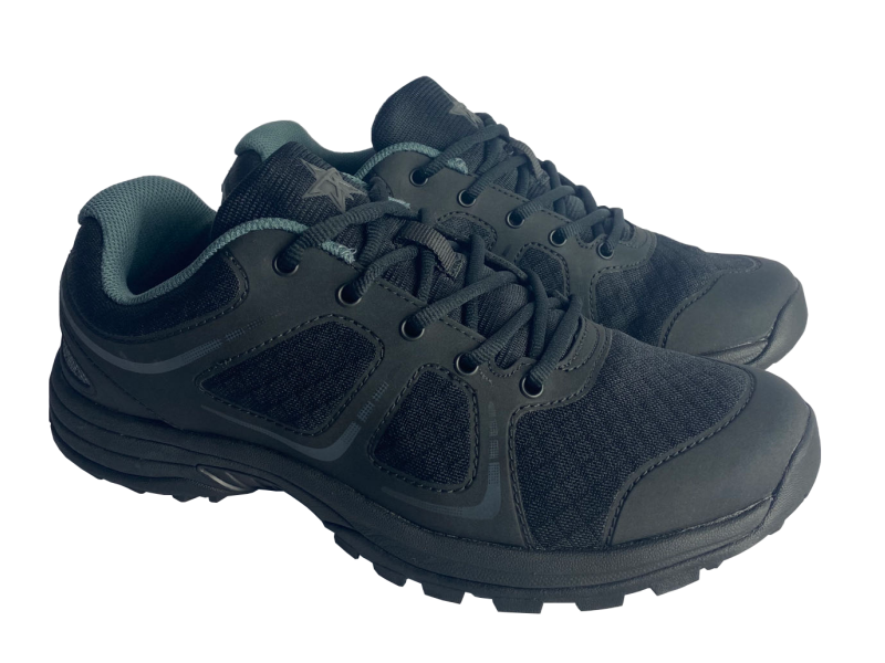 冬季工作鞋采取加強(qiáng)鞋底,具備一定的防穿刺功能。工作鞋樣式為低腰五眼系帶式,前幫由滌綸長絲鞋面布壓燙聚氨酯膠膜制成,后幫為熱塑性聚氨酯成型后包跟,鞋里為滌麻無紡布,大底由黑色發(fā)泡EVA/硬質(zhì)TPU/密實(shí)橡膠組成,幫底采用膠粘工藝,冬季工作鞋設(shè)置網(wǎng)加絨工藝。