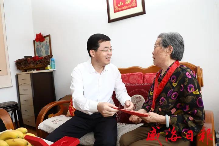 6月22日,在慶祝中國共產(chǎn)黨建黨100周年前夕,威海市委書記張海波走訪慰問我公司老黨員高素貞,為她佩戴“光榮在黨50年”紀念章,并祝福老人健康長壽、闔家幸福。